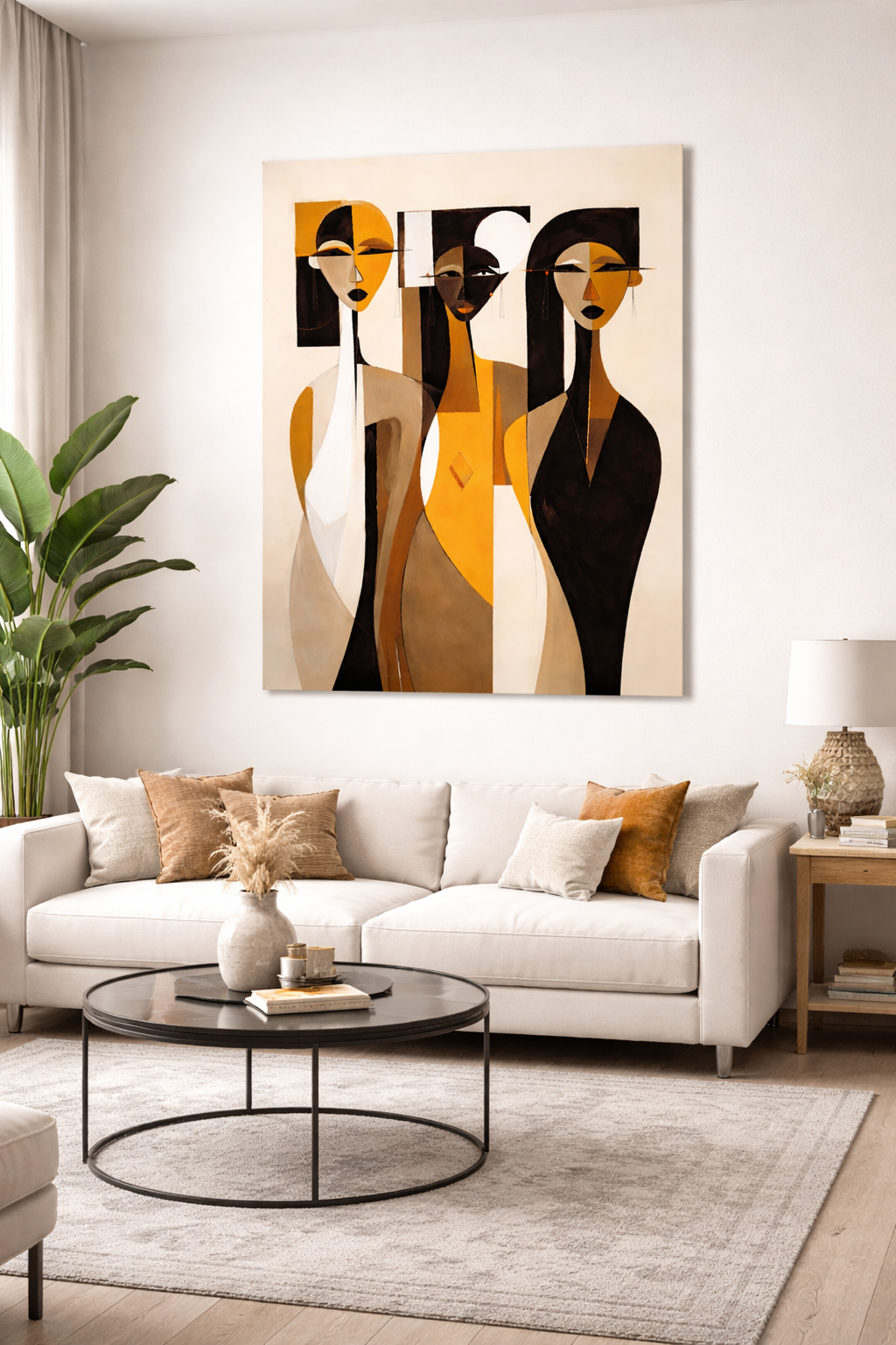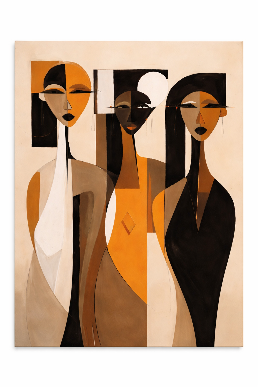 Un tableau contemporain qui célèbre la féminité à travers des formes épurées et des tons chauds.